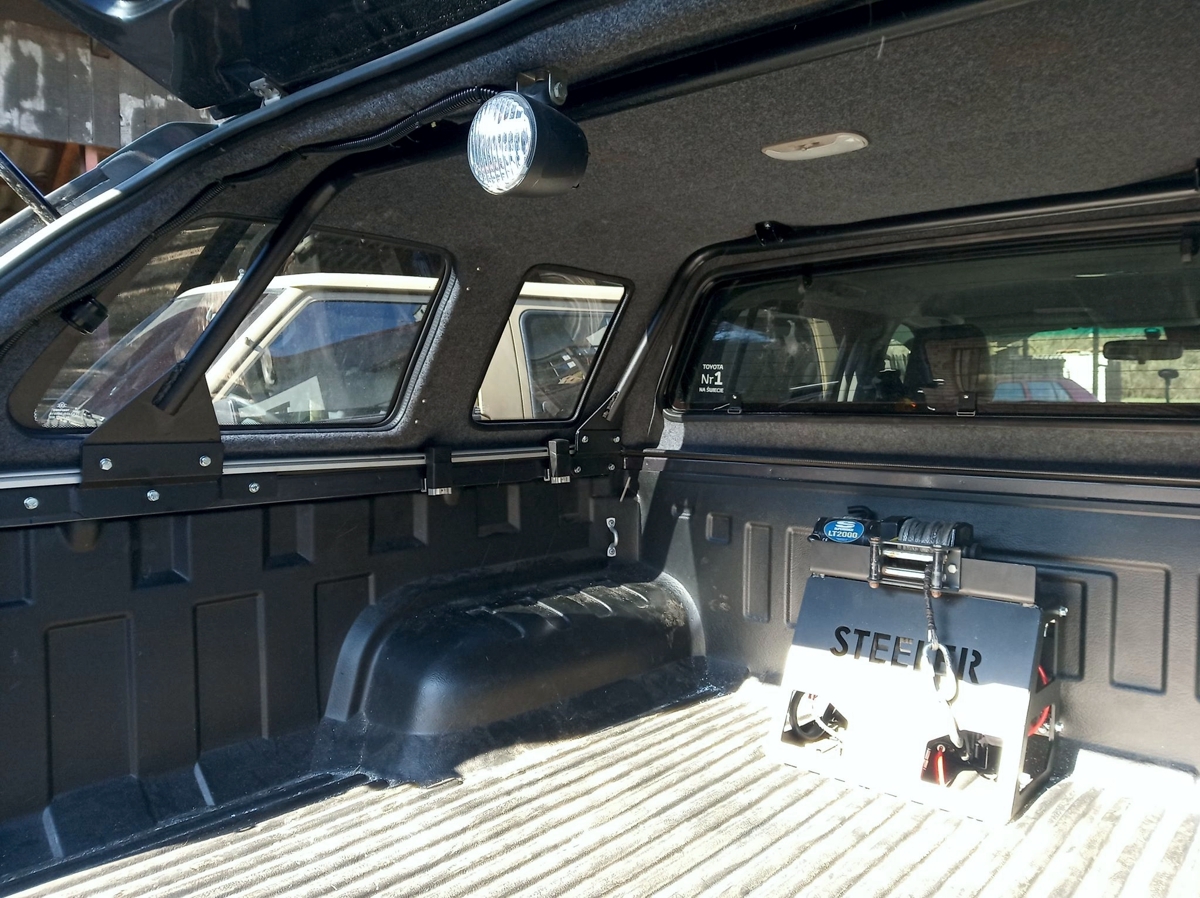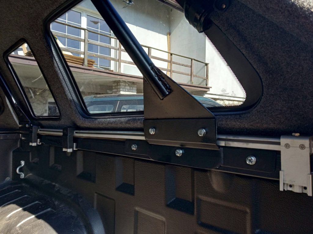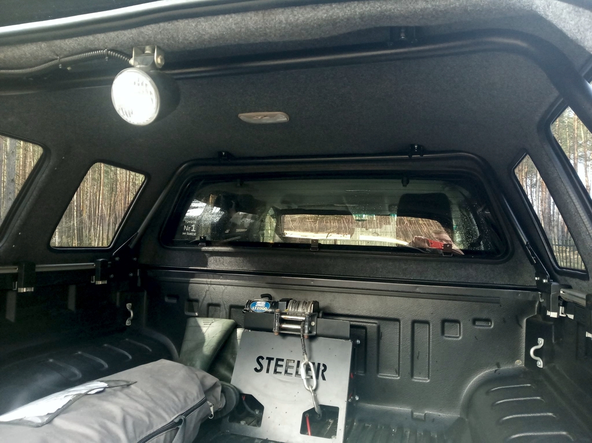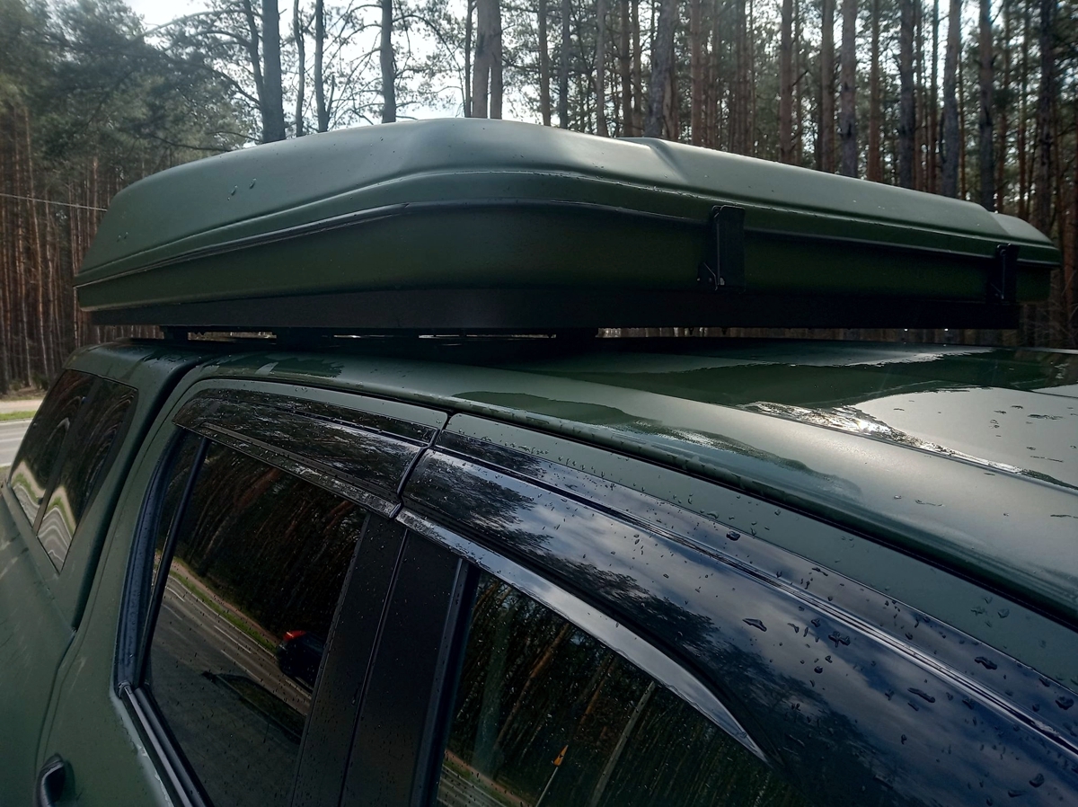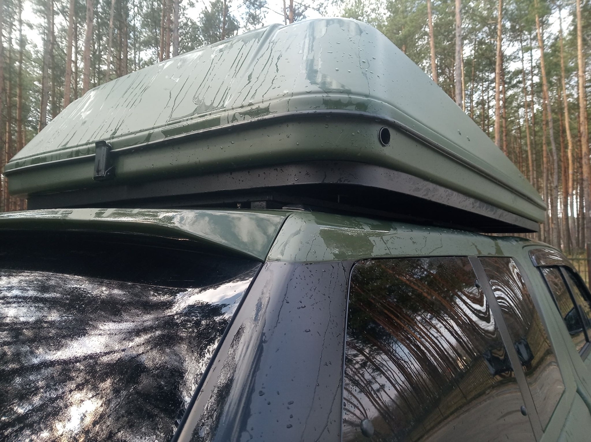 Konieczne było wykonanie nośnych konstrukcji z rur stalowych wewnątrz „hardtopowej” zabudowy. Zostały one wsparte na bocznych burtach. Do nich – przez specjalnie wykonane otwory w hard topie – zamontowany został płaski, stalowy bagażnik. Dopiero na nim postawiliśmy namiot dachowy typu kapsuła.