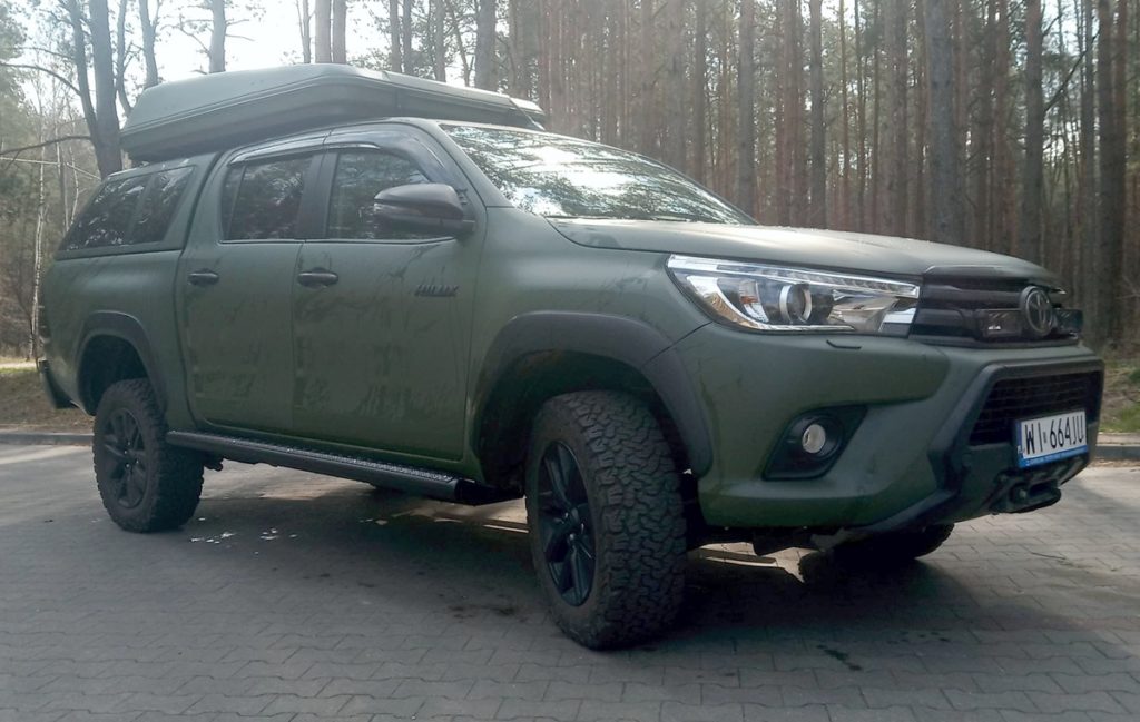Ostatnio do warsztatu Polskiego Offroadu trafiła Toyota Hilux z zamówieniem wykonania progów off road oraz bagażnika dachowego pod namiot dachowy typu „kapsuła”.