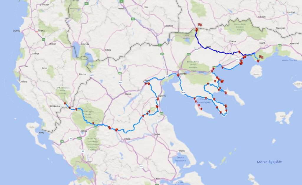 Ta część wyprawy prowadzi przez Grecję i trwa 9 dni (dzień 16–24). Do przejechania jest około 985 km.