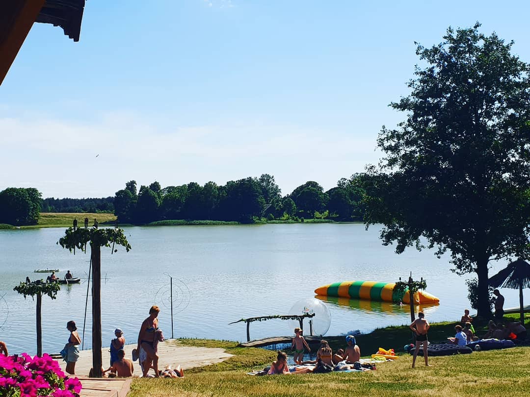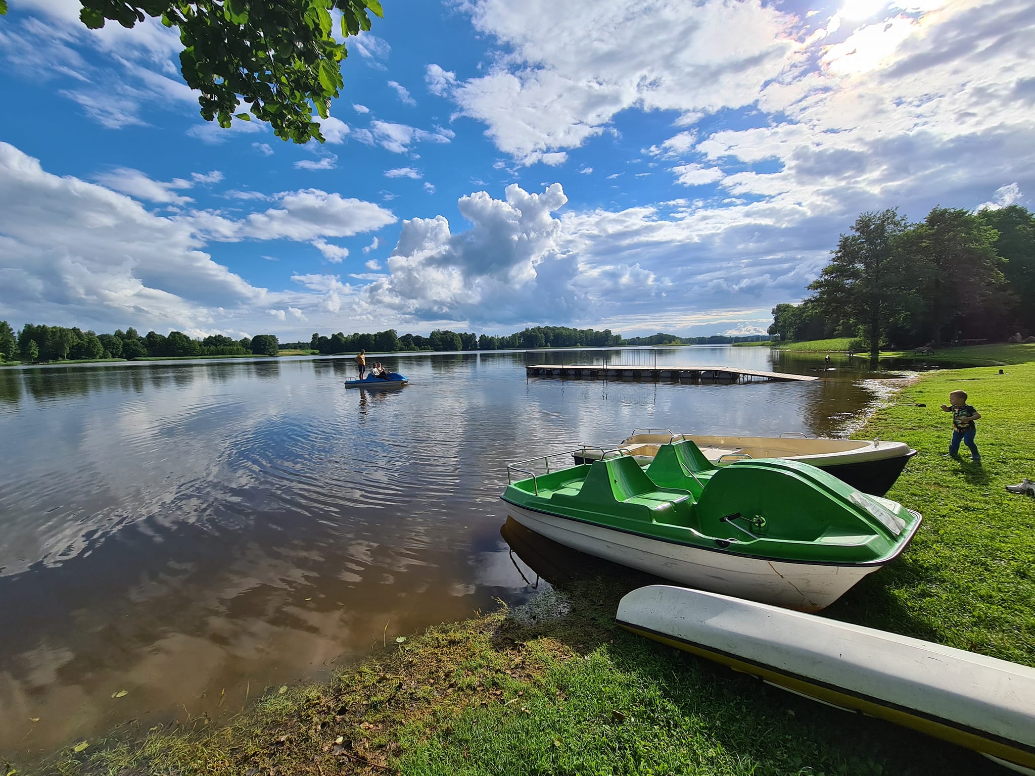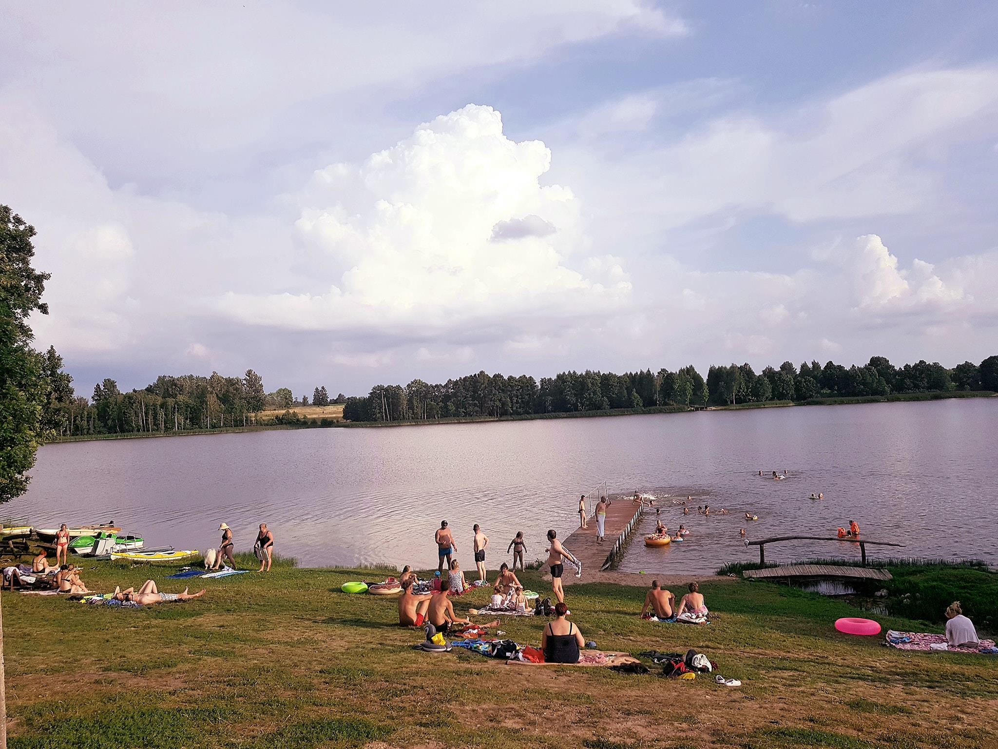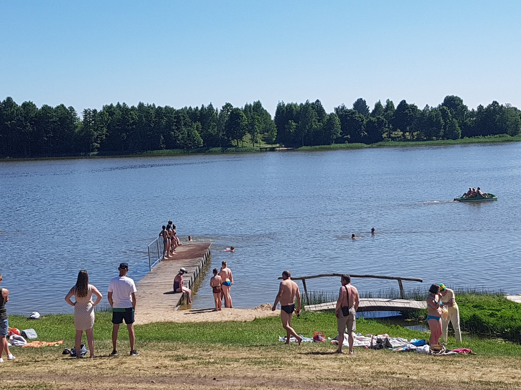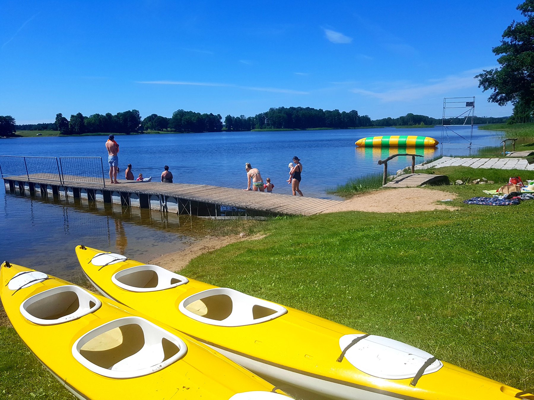 Ośrodek ma własną plażę, kąpielisko i wypożyczalnię sprzętu wodnego, a nawet konie do jazdy wierzchem. Latem przy plaży działa barek z przekąskami i zimnym piwem z nalewaka (!). W stołówce dostępne są wybrane posiłki lub pełne wyżywienie (pyszna, litewska kuchnia, bo gospodarze są Litwinami).