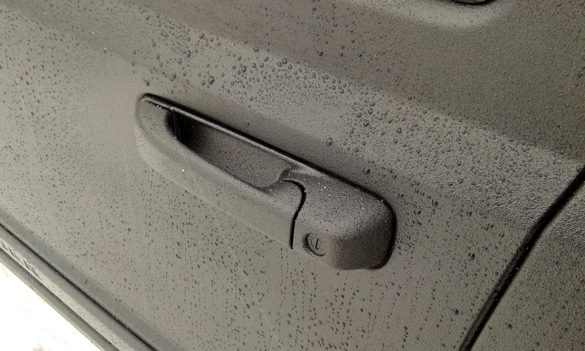 Potem właściciel próbował samodzielnie zabezpieczyć lakier folią w sprayu. Niestety z marnym rezultatem; na myjni, pod ciśnieniem wody zaczęło wszystko odłazić…
