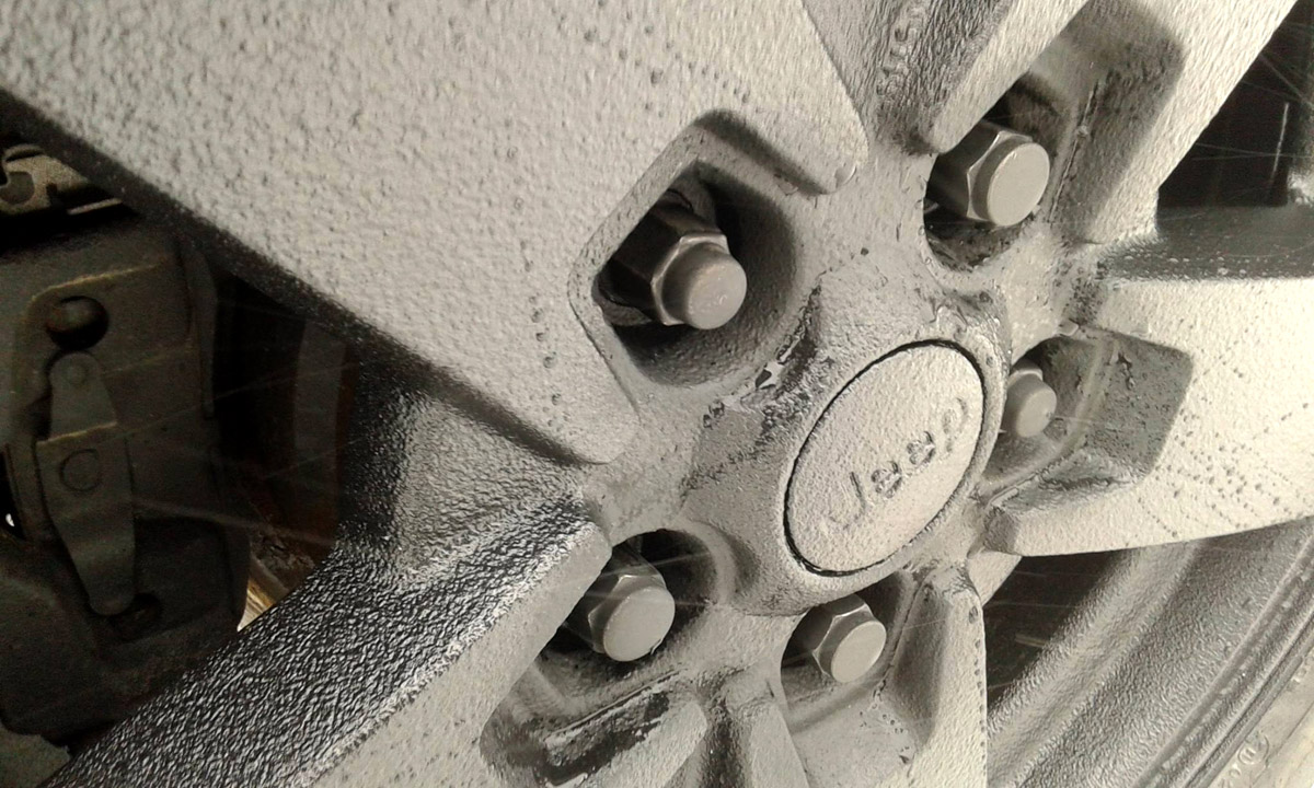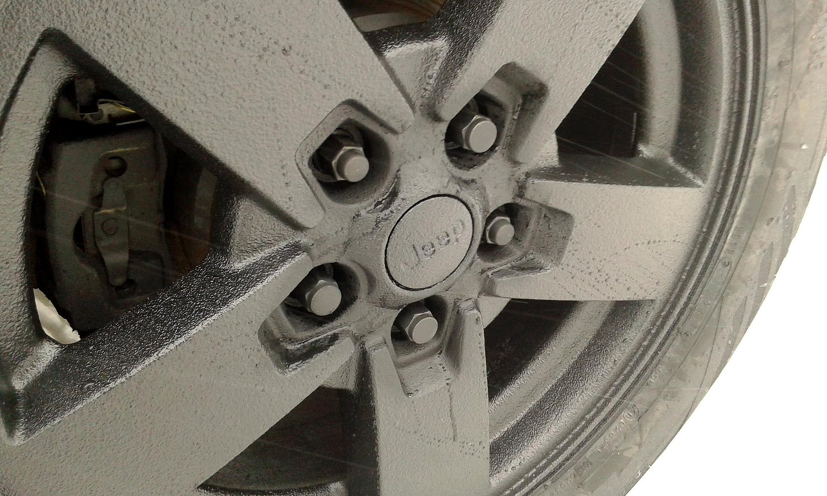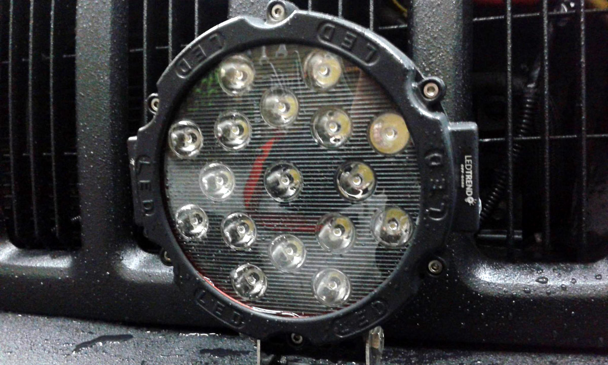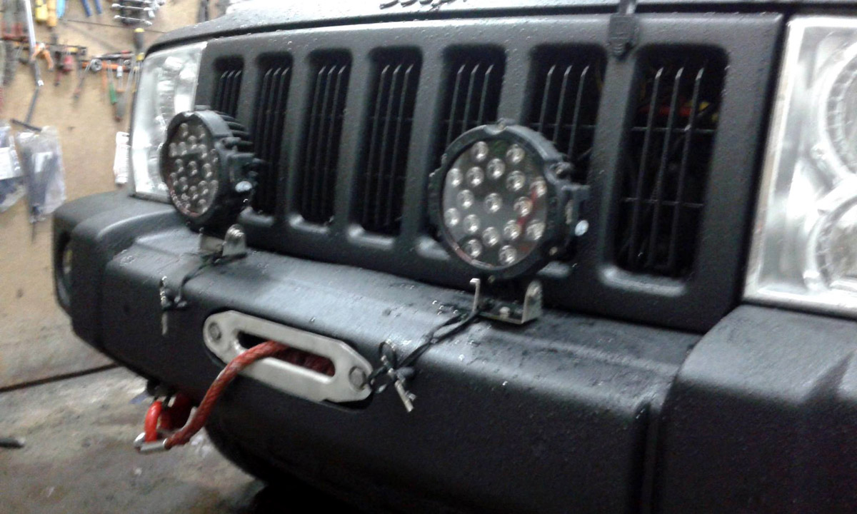 Zdecydował się więc na malowanie całości Raptorem. Dosłownie całości: zderzaki, klamki, felgi, a nawet emblemat Jeepa. Zamówił też dodatkowe lampy ledowe Ledtrends.